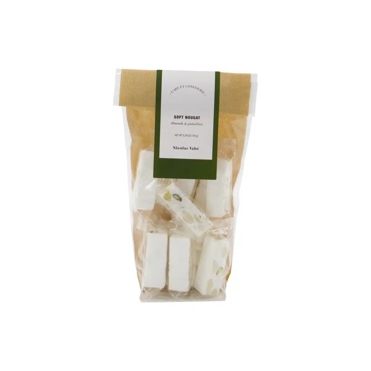 Hapklare lekkernijen voor elke gelegenheid. Geniet van de onmiskenbare smaak van pistachenoten en de crunch van geblancheerde amandelen in dit zakje Italiaanse zachte nougat van Nicolas Vahé. De nougatzoetheid en de nootachtige smaken komen samen in deze uitgebalanceerde traktatie.