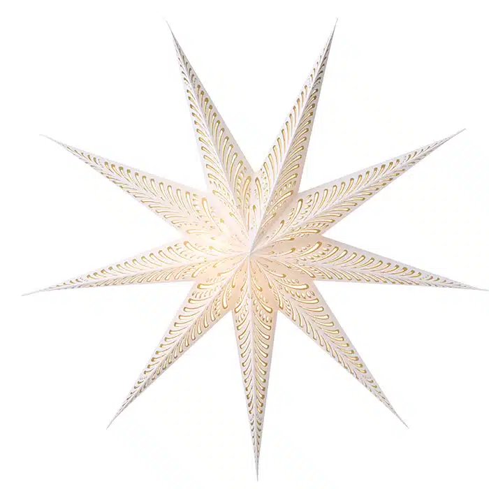 Betoverende papieren sterlamp met gedetailleerde uitsnijdingen en glitter.