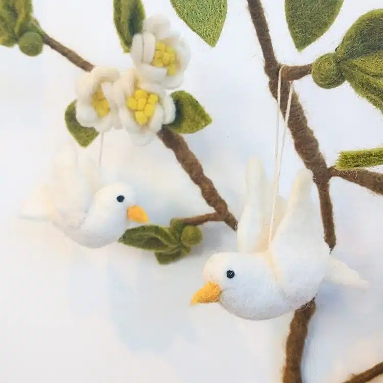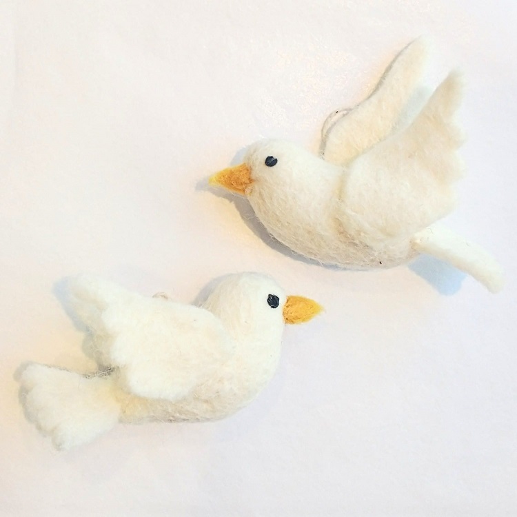 Een mooi setje van twee vilten vredes duifjes.