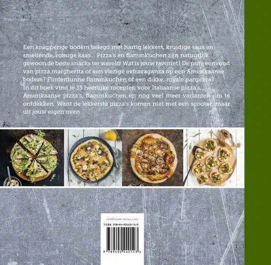 Een knapperige bodem belegd met hartig lekkers, kruidige saus en smeltende, romige kaas… Pizza’s en flammkuchen zijn natuurlijk gewoon de beste snacks ter wereld! Wat is jouw favoriet? De pure eenvoud van pizza margherita of een vlezig extravaganza op een Amerikaanse bodem? Flinterdunne flammkuchen of een dikke, royale panpizza? In dit boek vind je 35 heerlijke recepten voor flammkuchen, Italiaanse en Amerikaanse pizza’s en nog veel meer varianten om te ontdekken. Want de lekkerste pizza’s komen niet met een scooter, maar uit jouw eigen oven.