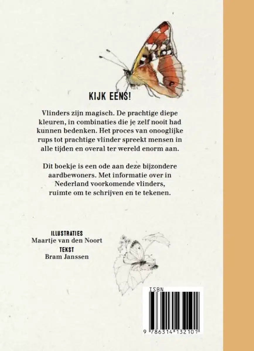 Dagpauwoog, blauwtje of koolwitje. Je hebt ze vast wel eens zien vliegen, maar heb je ze ooit echt goed bekeken? Ze zijn nog mooier dan je dacht! Dit boekje nodigt je uit om deze fladderaars gedetailleerd te bekijken. Van de oogjes en de pootjes tot de vaak prachtige tekening op de vleugels. Met informatie over vlinders en ruimte om te schrijven en te tekenen, is dit boek een ode aan deze bijzondere insecten.