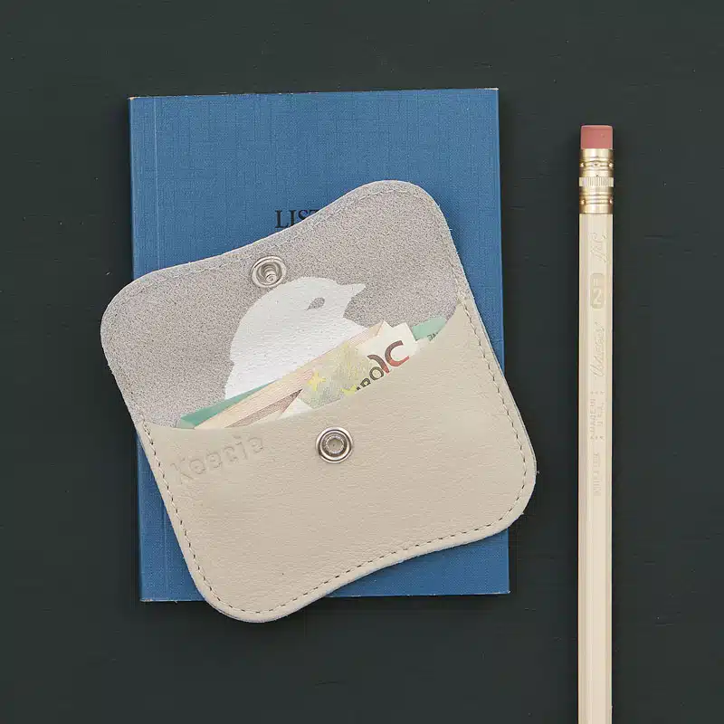 Dit kleine leren portemonneetje is leuk voor wat kleingeld en wat pasjes (pinpas, collegekaart, ovkaart. creditcard) als je geen ruimte hebt in je tas voor een grote portemonnee of je even snel een boodschap wilt doen.
