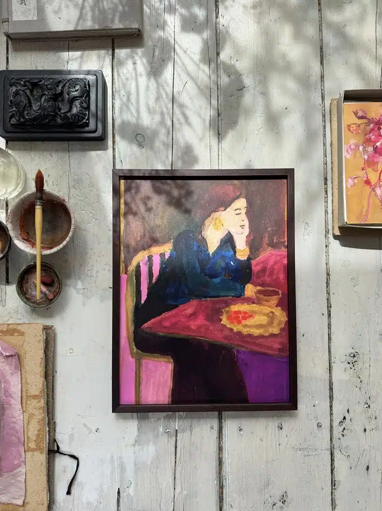 Het originele kunstwerk is geschilderd met een Japans penseel en handgemaakte natuurborstels op antiek Frans linnen. Deze kunstprint is een reproductie van prachtige kwaliteit.