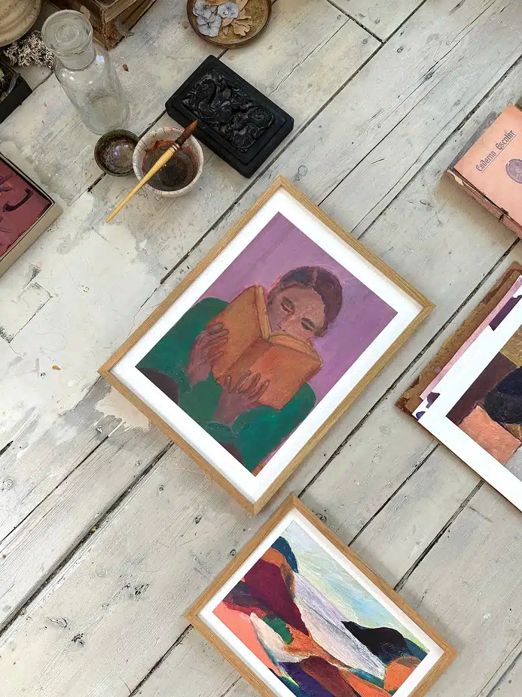 Tiny is kunstenaar en schildert met haar tinystories verhalen uit haar leven, haar kleine wereld op papier. Voor haar is schilderen als het vertellen van kleine verhalen, het oproepen van een gevoel dat ik ooit heb ervaren, en vervolgens, door middel van bewegingen, lijnen, kleuren of vormen die in een schilderij tot uitdrukking komen, breng ik dat gevoel over op anderen, zodat zij het kunnen ervaren en hun eigen verhaal kunnen creëeren. Ze schildert graag met handgemaakte penselen, met natuurlijke inkt, aquarelverf of acrylverf op gebruikte materialen zoals oud papier, linnen boekomslagen en antiek Frans linnen.