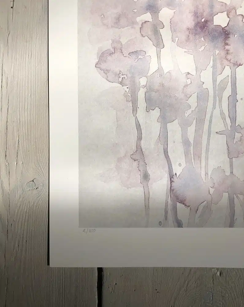 Deze kunstprint heeft een witte rand rond het motief, wat een passe-partout-effect creëert. De getoonde afmetingen geven de werkelijke afmetingen van de kunstprint aan, inclusief de witte rand.