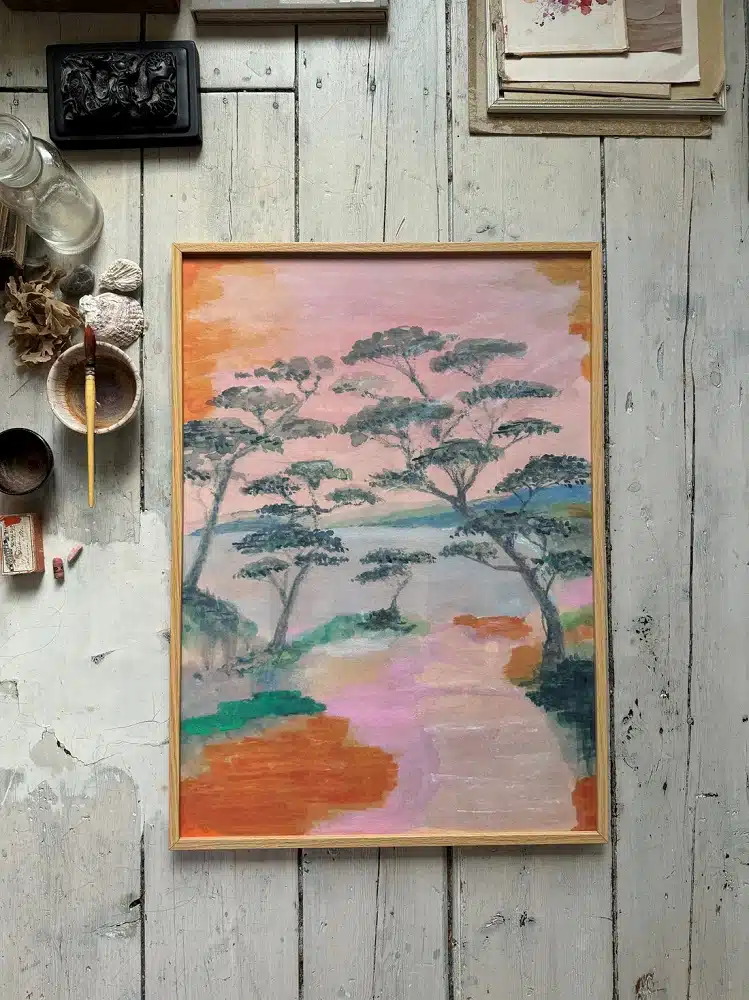 Het originele kunstwerk is geschilderd op vintage papier. Deze kunstprint is een reproductie van prachtige kwaliteit.