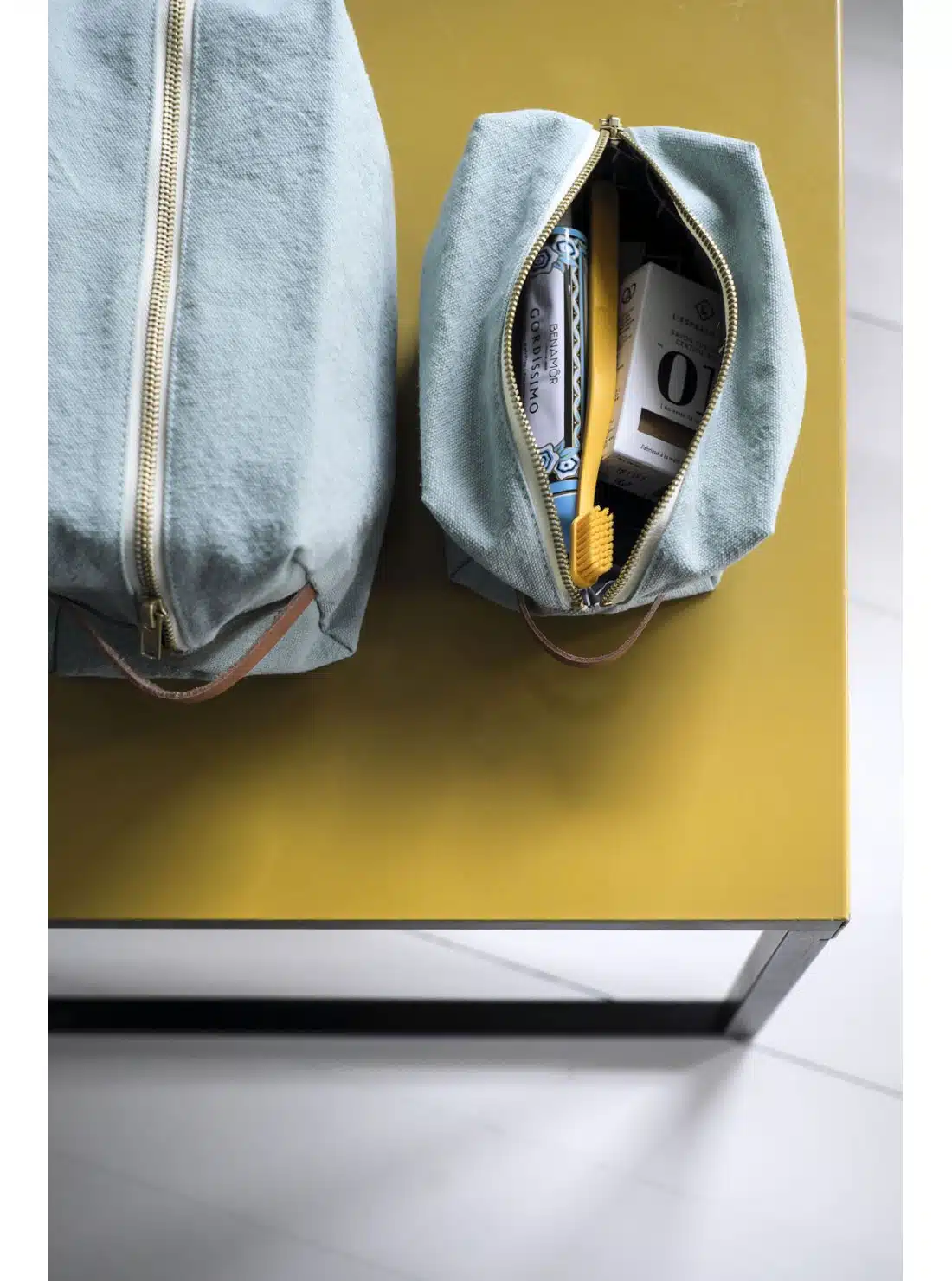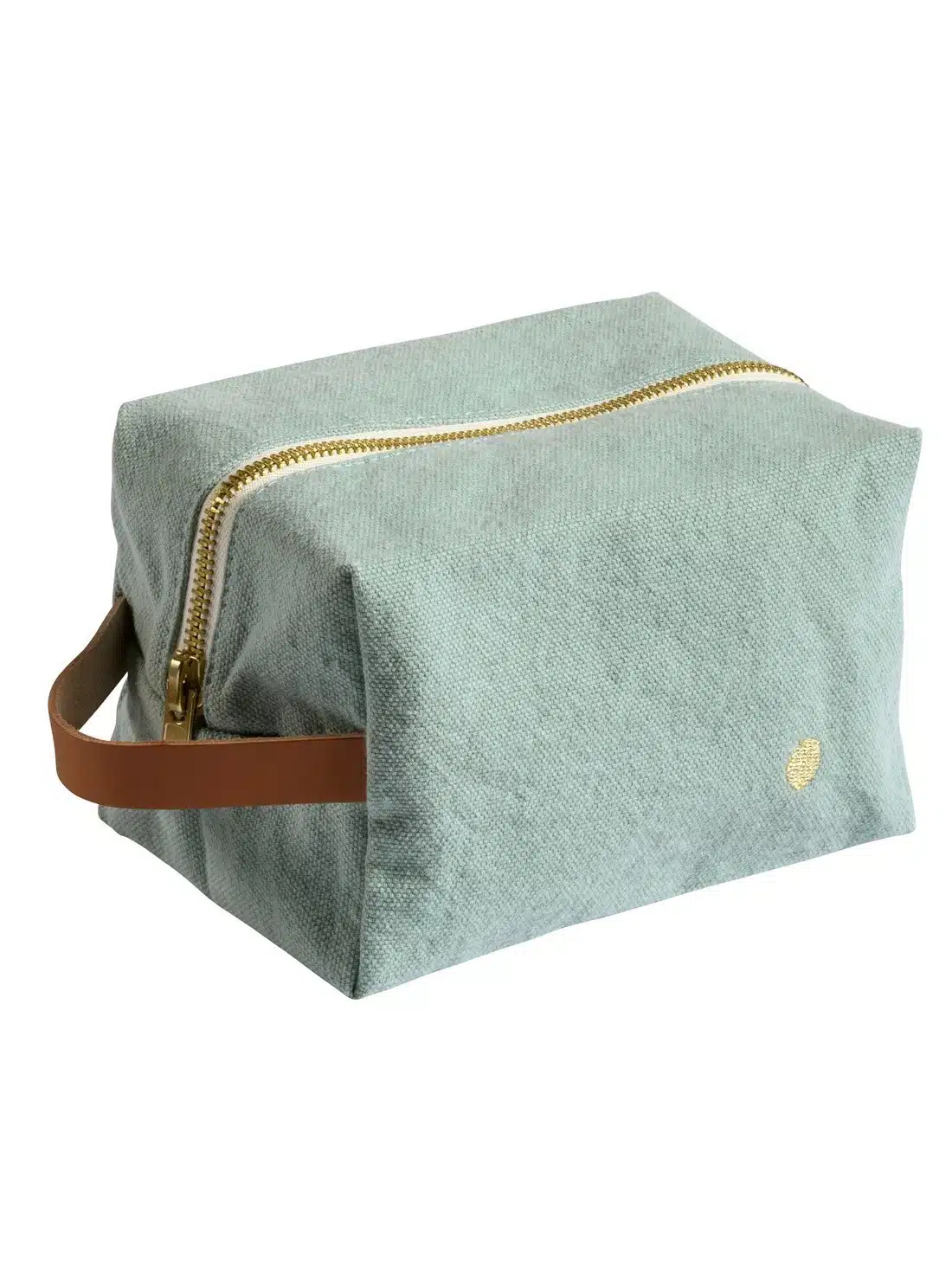 De Cube pouch is een klein, compact, licht blauw toilettasje.