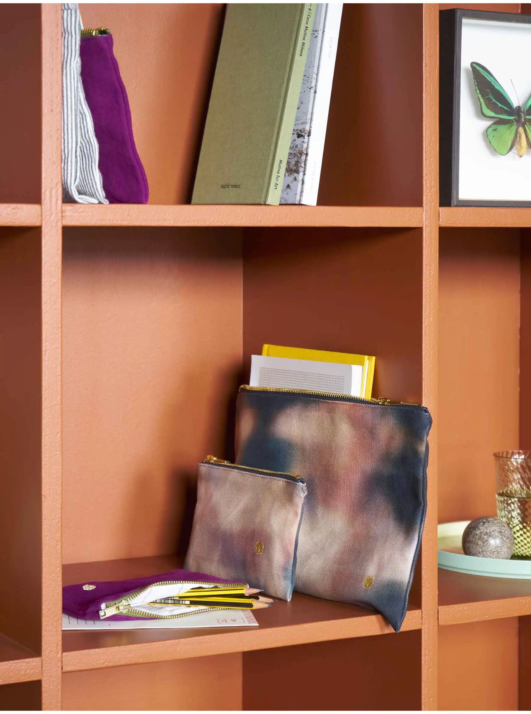 De kleinste pouch uit het assortiment van La Cerise in een mooie tie dye print. Handig voor wat pasjes en muntjes, sieraden of andere kleine spullen. Onmisbaar.