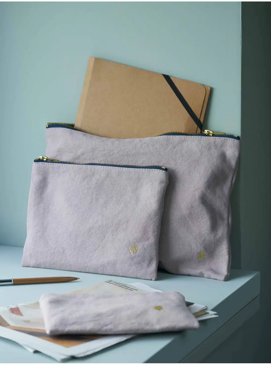 Als clutch, toilettasje of voor jouw e-reader? De pouch is multifunctioneel, mede door de waterdichte binnenkant en de dikke katoenen stof.