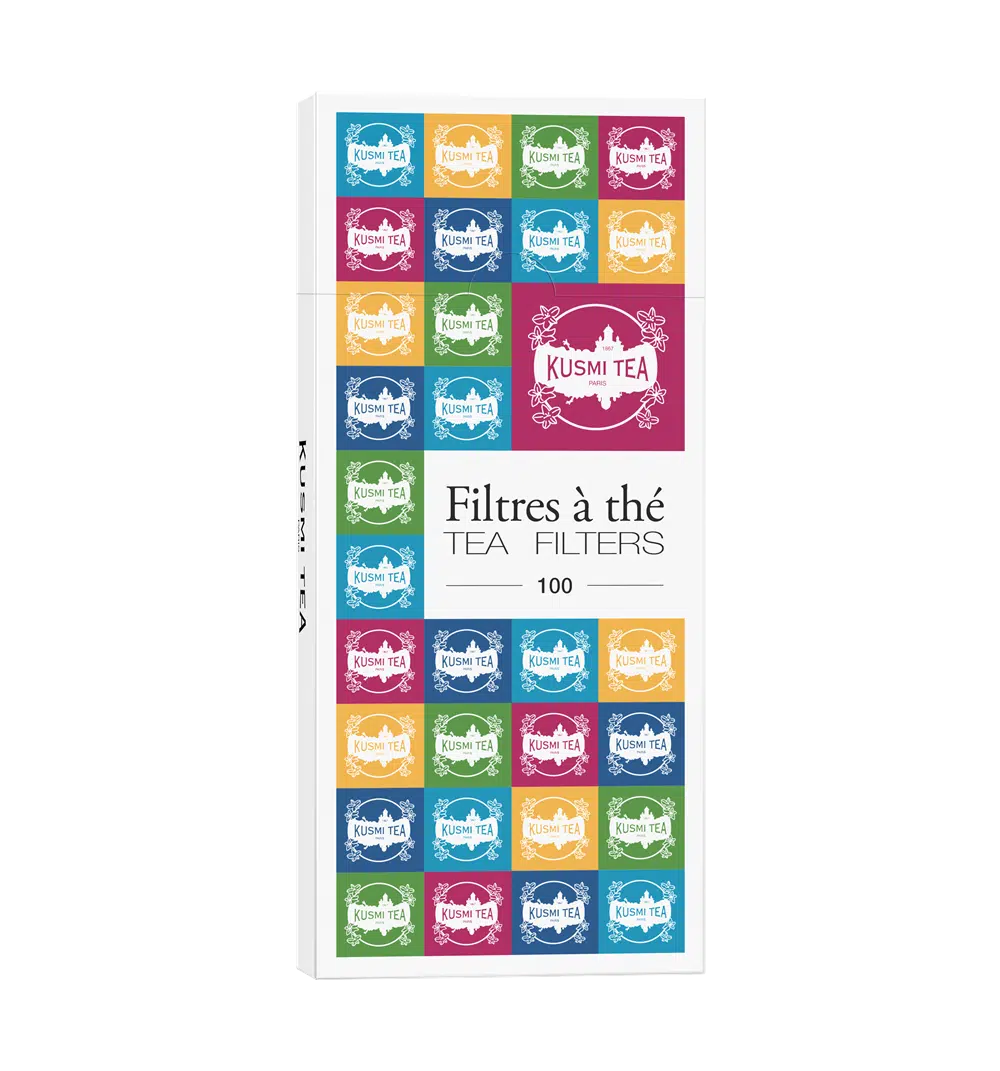 Een doosje met 100 chloorvrij gebleekte theefilters.