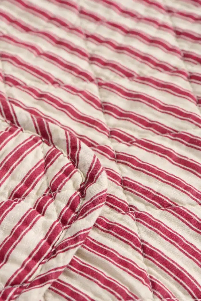 Een heerlijk gewatteerde deken met een frisse rood / witte (gebroken wit) streep.