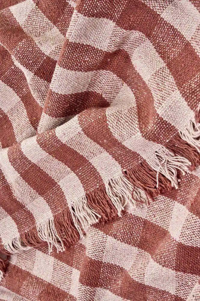 Deze recycled katoenen plaid in oudroze, lichtroze brengt rustige warmte en kalmte in elke kamer in je huis. Gebruik deze throw op de bank of als extra laagje op bed. Elke throw is met zorg gemaakt in India.
