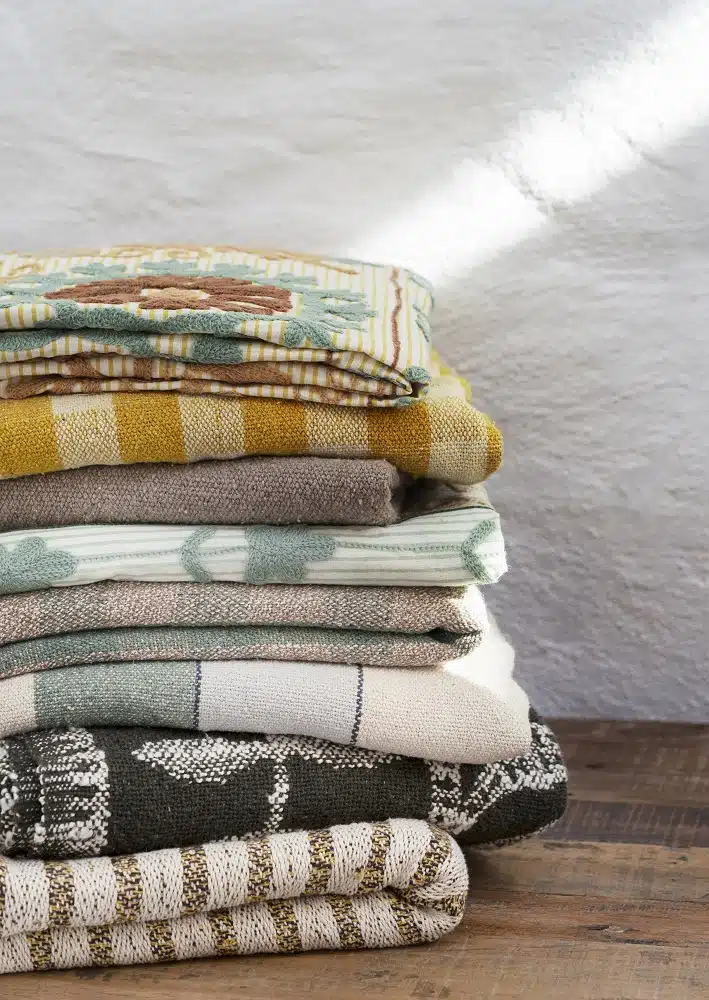 Gemaakt van 100% gerecycled katoen uit afgedankte kleding, grondstofbesparend en met de hand geweven.