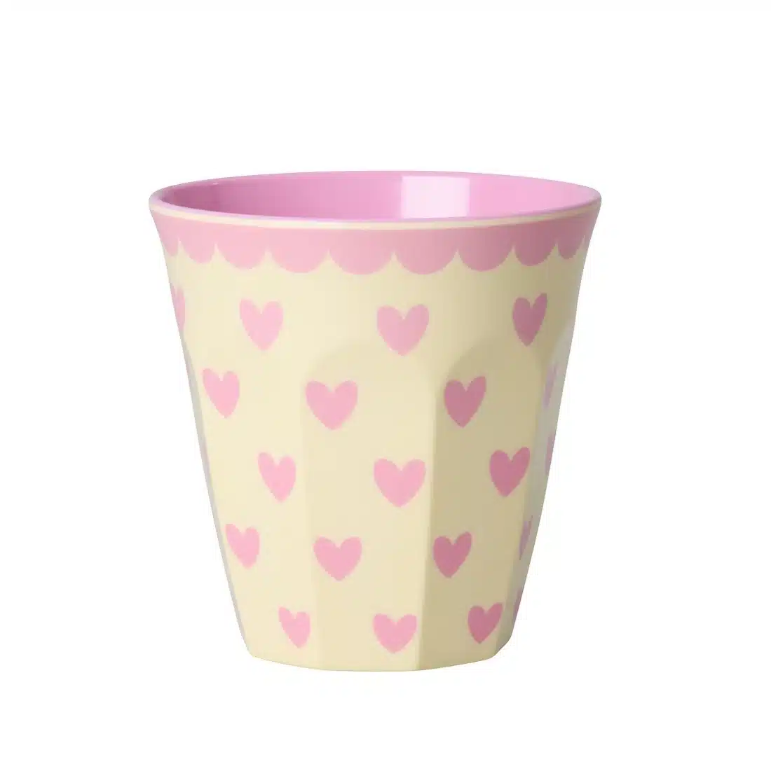 Drink je favoriete drankje in deze leuke beker met roze hartjes en een geschulpt randje aan de buitenkant en een roze kleur aan de binnenkant. De beker is handig voor van alles: om eruit te drinken, er potloden in te bewaren of mee te nemen naar een picknick!