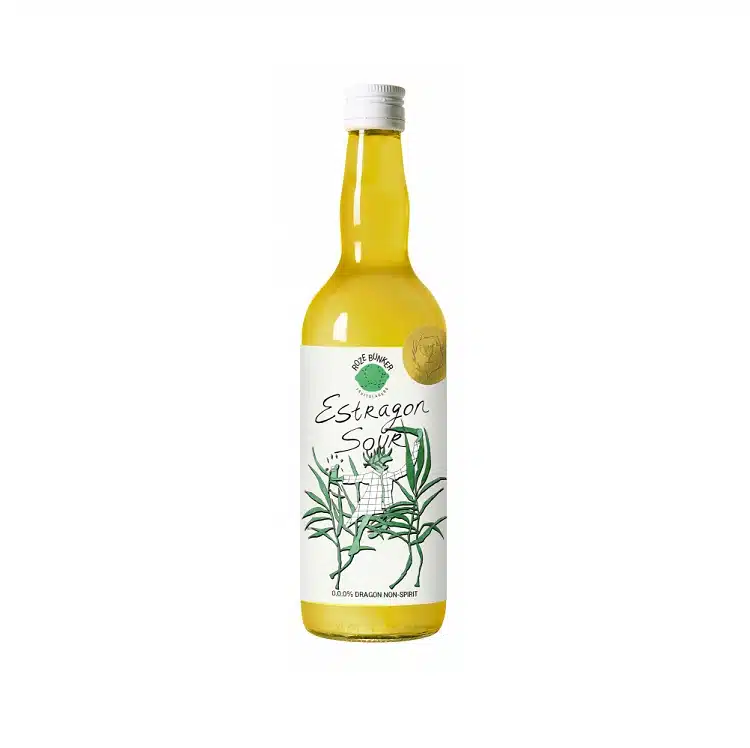 Estragon Sour wint de internationale 0.0.0 % golden medal en dat is voor niets. Weinig suiker, geen alcohol en een positieve impact op de aardbol. Deze fles verslaat alle prijzen uit de drankkast en verlegt de smaak van frisdrank. Estragon (Dragon) legt een bedwelmende deken van anijstonen op je tong en verjaagt zo je lust naar alcohol, terwijl de zure basis van onrijpe druiven en levende azijn een krachtig wapen vormt om suikers uit je glas te verdrijven. De Estragon (dragon) sour volstaat in een rokerige drankkast en is jouw beste vriend voor een avond met non-alcoholische cocktails.