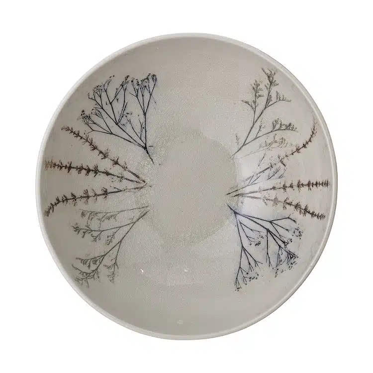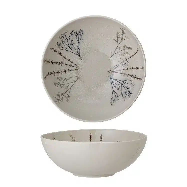 De Bea Salad Bowl van Bloomingville is een mooie grote saladeschaal van steengoed in natuurlijke kleuren, met een delicaat bloemenmotief op het craquelé glazuur. De slakom is handgemaakt en daardoor is elk stuk uniek.