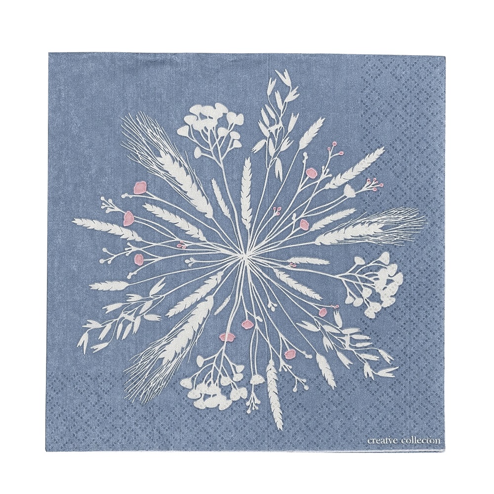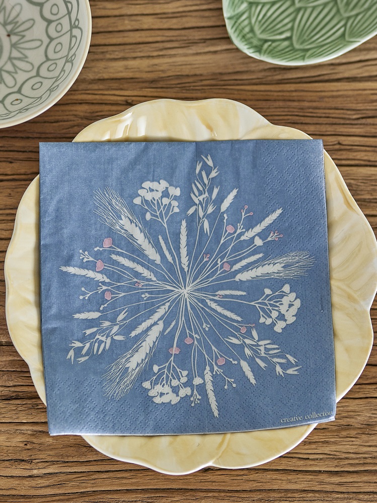 De Corn Napkins van Bloomingville zijn een pak van 20 servetten in een FSC-mix. De servetten hebben een gezellige botanische print in lichte en roze kleuren op een blauwe achtergrond. Perfect voor een mooie tafelsetting.