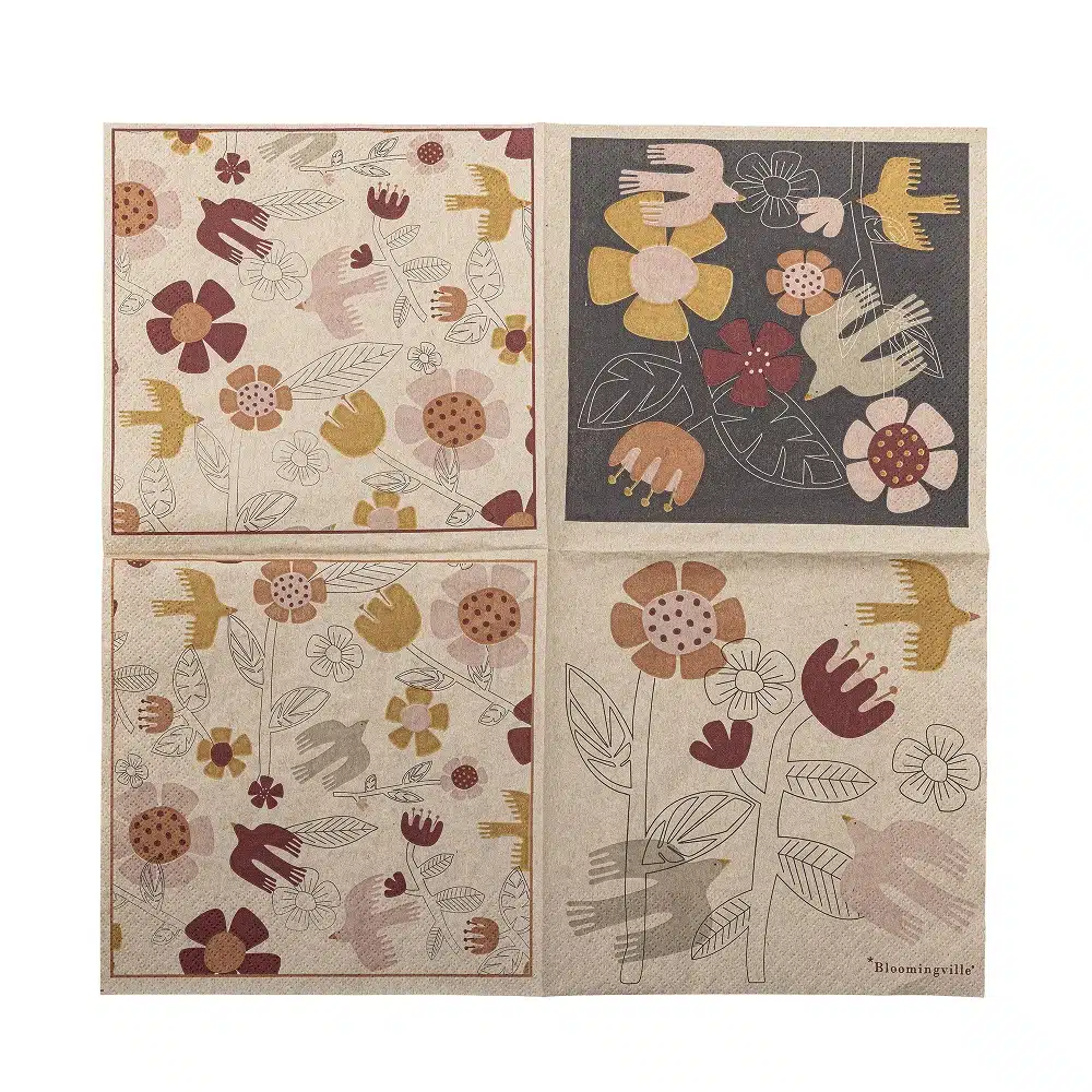 De Vivielle servetten van Bloomingville zijn gemaakt van FSC-gecertificeerd papier met grafische vismotieven en tekst. De levendige kleuren en het creatieve ontwerp maken ze perfect voor elke tafelsetting. De verpakking bevat 20 stuks.