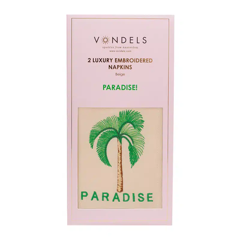 Een set luxe geborduurde servetten van het Amsterdamse merk Vondels – klassiek en eigentijds.