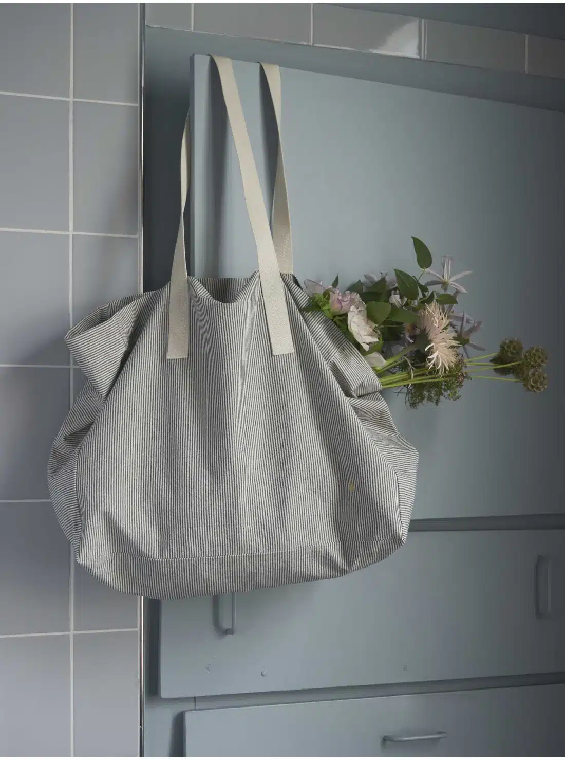 Een heerlijk grote (boodschappen) tas van het Franse merk La Cerise sur le gateau in de mooie klassieke streepjes print in caviar (zwart) – Finette. Deze tas is gemaakt van stevig maar soepel katoen.