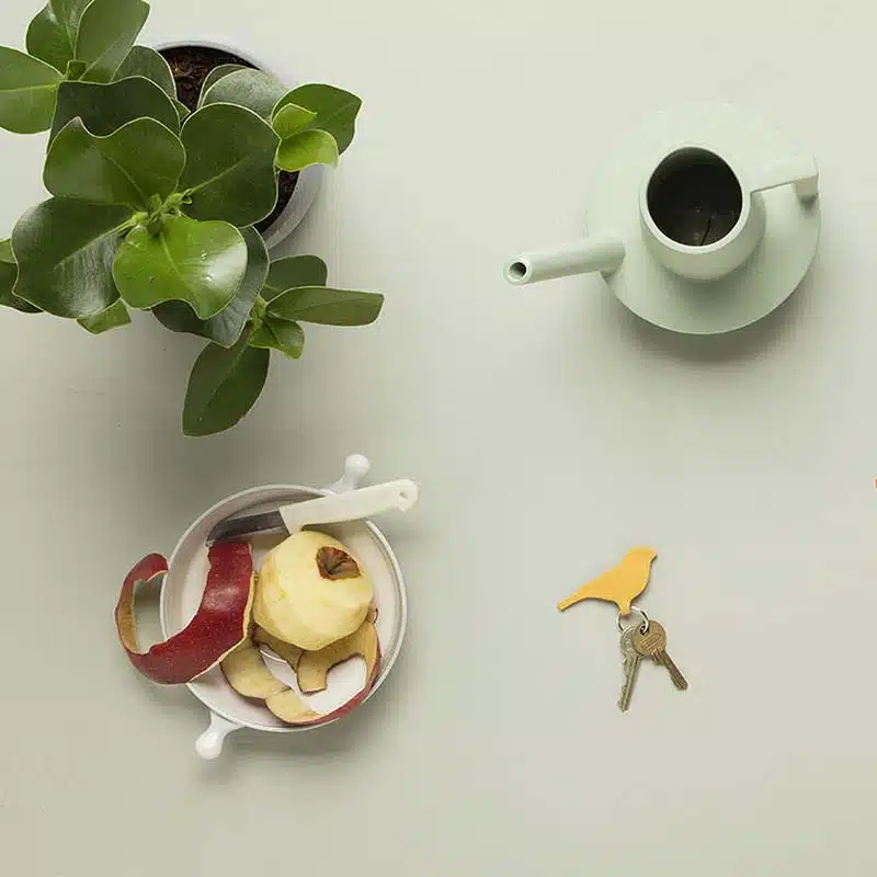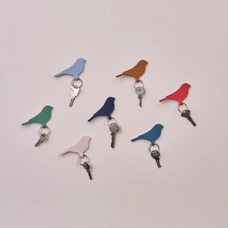 Eindelijk, een vogeltje dat niet wegvliegt. Heel veilig dus om deze gele leren sleutelhanger te laten waken over je sleutelbos.
