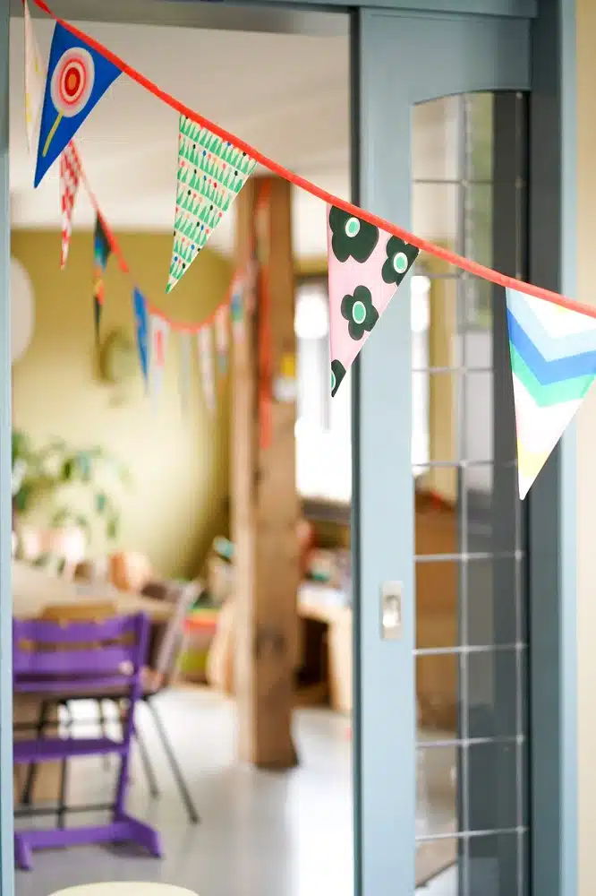 Deze slinger Sun van Engel. maakt elk feest nog feestelijker! De stoffen vlaggenlijn is maar liefst 12 meter lang. De woonkamer is nog nooit zo snel en zo mooi versierd. En geef je het feestje buiten? Ook dan kun je deze slinger ophangen, want hij is geschikt voor binnen en buiten. De vlaggenlijn is gemaakt van gerecyclede PET-flessen en wordt geleverd in een mooie opbergdoos. Zo kun je jarenlang genieten van de slinger. Vier het leven!