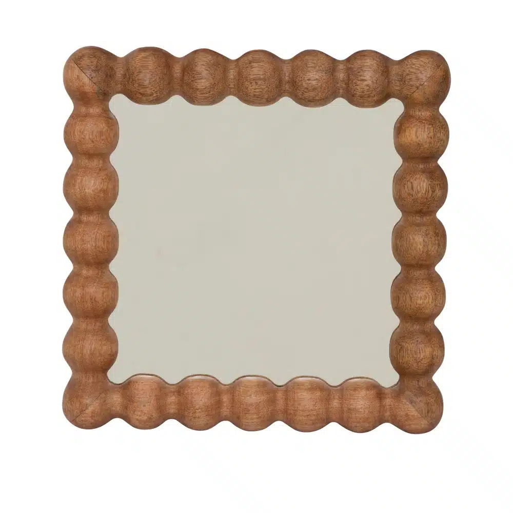 Gemaakt van ecologisch verantwoord mango-hout, deze stippen spiegel combineert speels ontwerp met natuurlijke warmte. De compacte afmetingen en de cadeauklare verpakking maken het een doordachte accentstuk. Een charmante aanvulling op je wanddecoratie collectie.