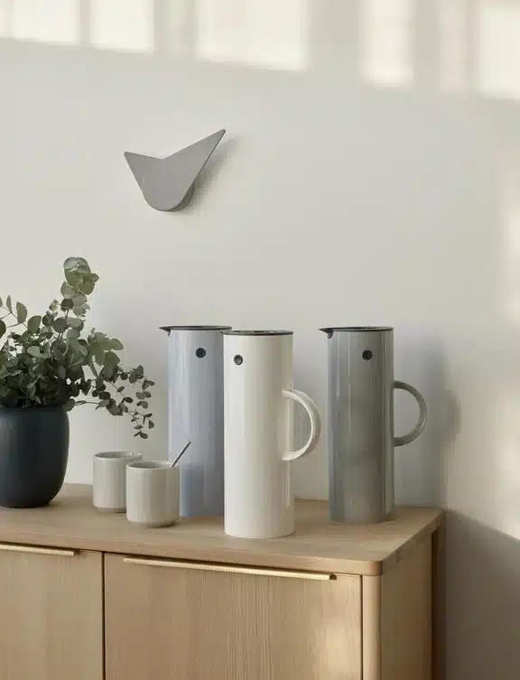 De EM77 vacuum jug is een echt design klassieker. Deze thermoskan is in 1977 ontworpen door Erik Magnussen. Tijdloos en innovatief. Naast een gewone schroefdop heeft deze kan ook een (gepantenteerde) kanteldop om jouw overheerlijk kop koffie of thee in te schenken.
