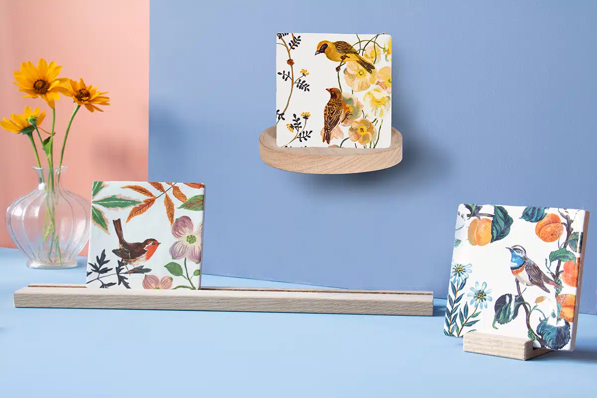 De Tiny things holder heeft een diameter van 14 cm en is 2 cm hoog. Je kunt er een tegeltje op zetten, bijvoorbeeld in onze kleine holder, maar hij is vooral bedoeld om mooie kleine items op te zetten. Als je de Tiny things holder ophangt tussen al je tegeltjes aan de wand geeft dat een speels effect.