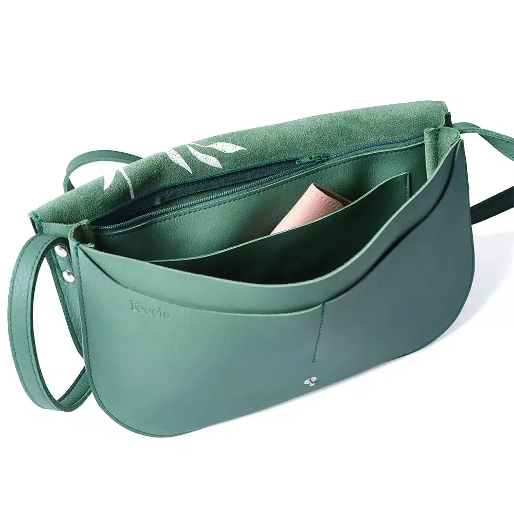 De Wish Tree is gemaakt van oersterk Italiaans leer in een prachtige Forest kleur, een vergrijsd groen dat goed combineert met zowel pasteltinten als lichte kleuren. Zoals je van Keecie gewend bent, is elk exemplaar met de hand gemaakt en met oog voor detail afgemaakt. Zo hebben we bij onze Wish Tree de bodem extra versteviging gegeven, zodat deze kwalitatieve damestas altijd mooi in vorm zal blijven.