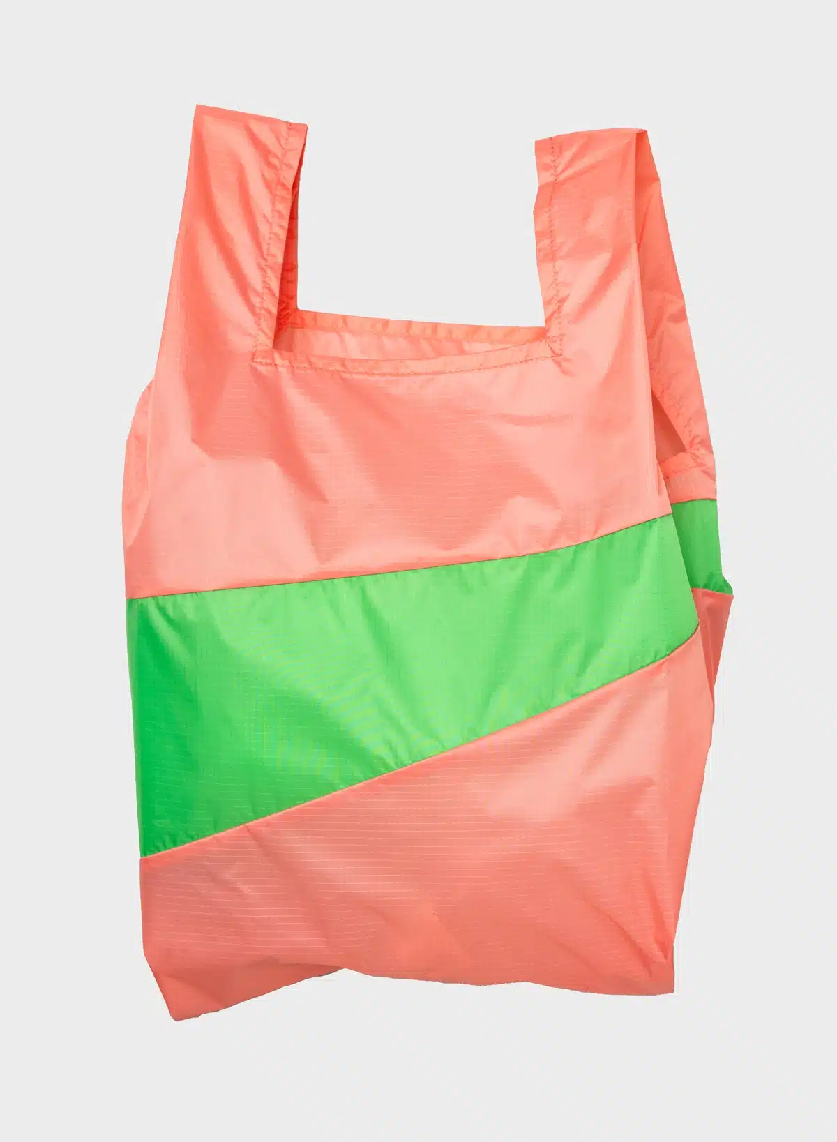 De shopping bag van Susan Bijl is er om de plastic tassen te vervangen die je in winkels en markten koopt, maar je kunt hem voor praktisch alles gebruiken: een eenvoudige, sterke tas die alle andere tassen vervangt. Je kunt hem in je hand (medium en klein) of over je schouder (groot) dragen en hij kan meer dan 20 kg dragen.