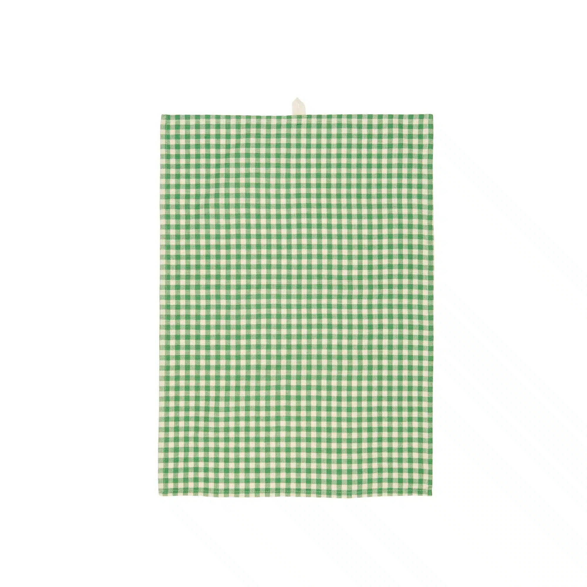 Een theedoek van het Deense merk IB laursen in een frisse groen-witte ruit.