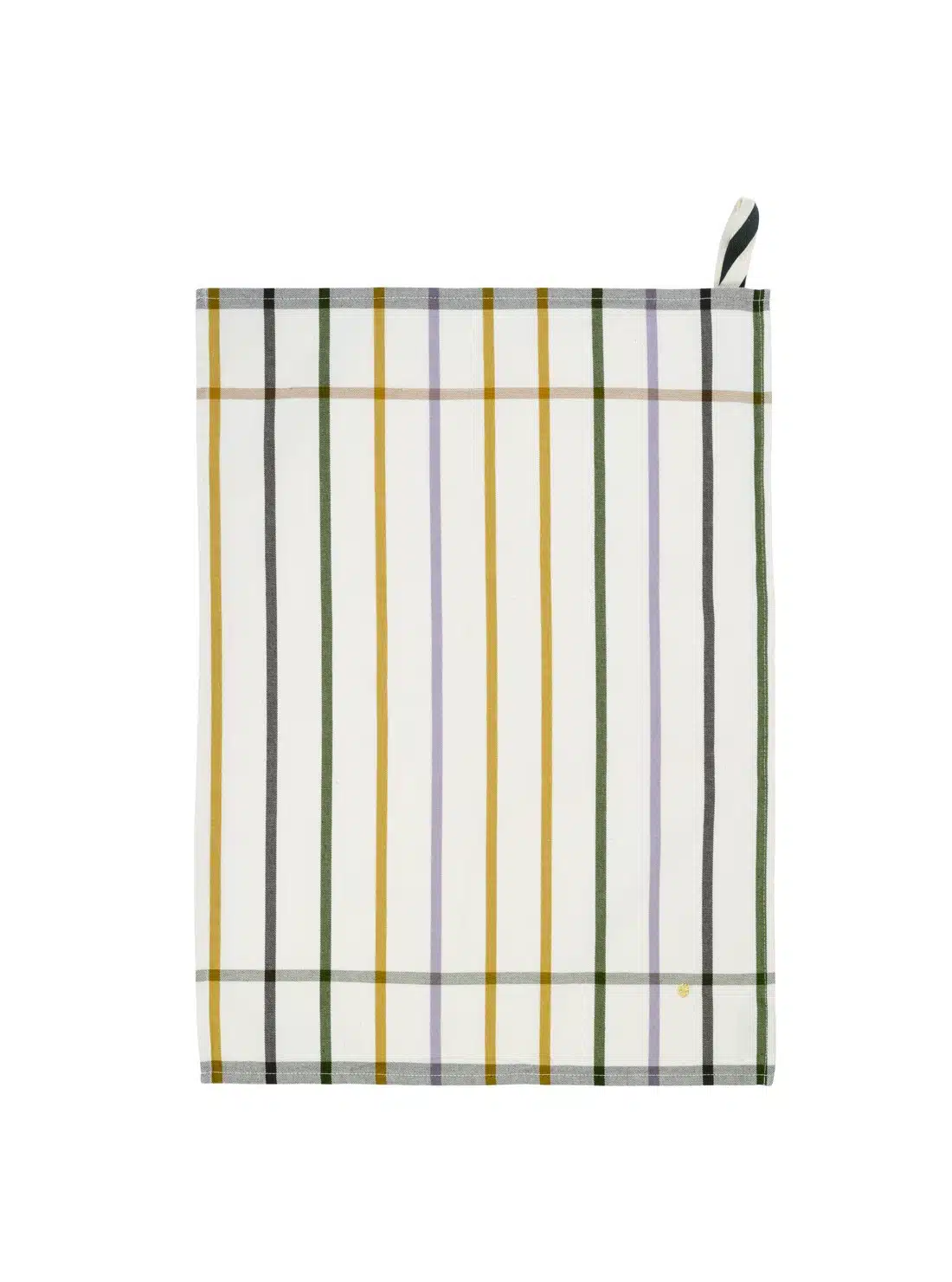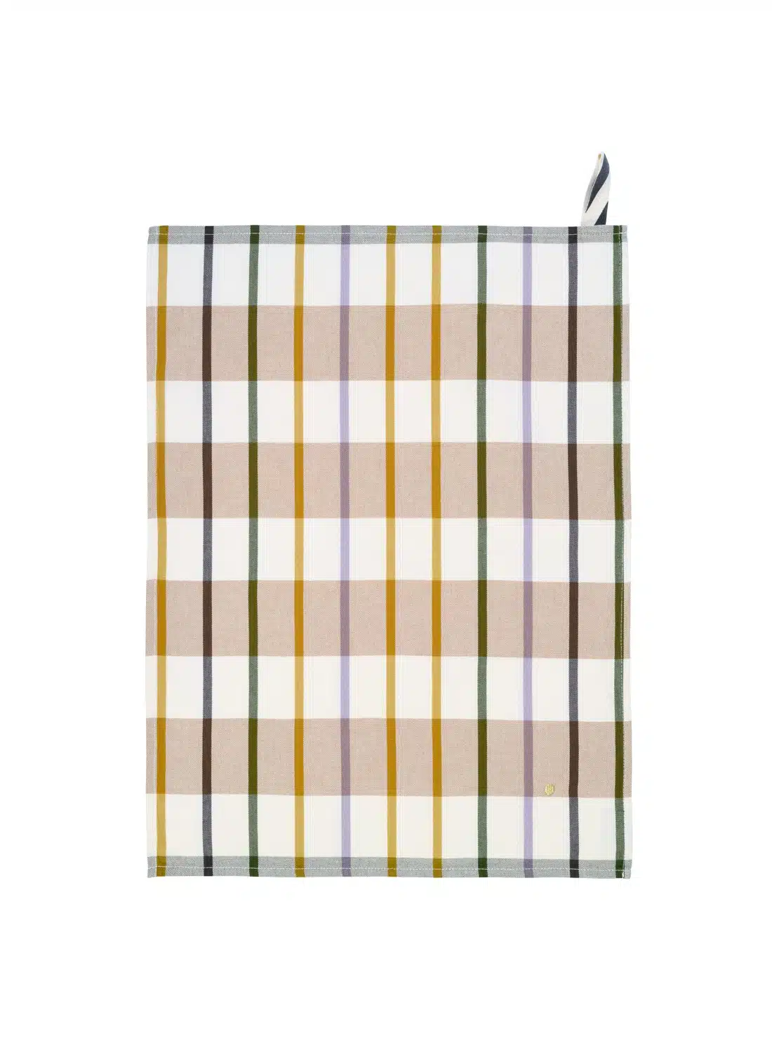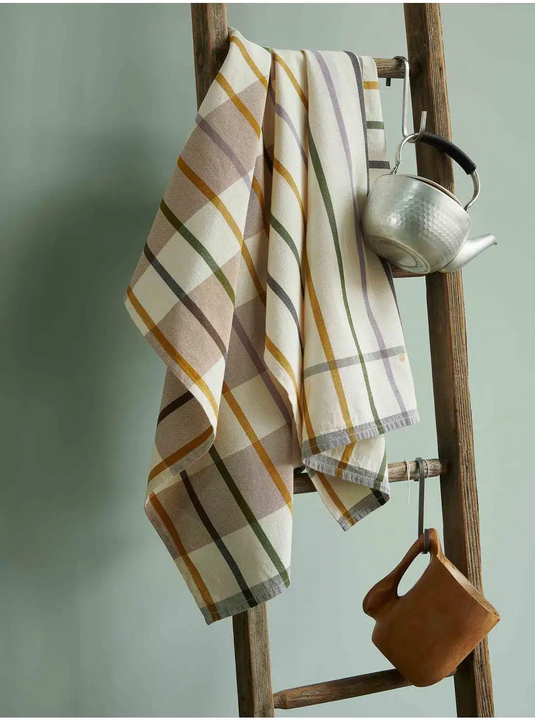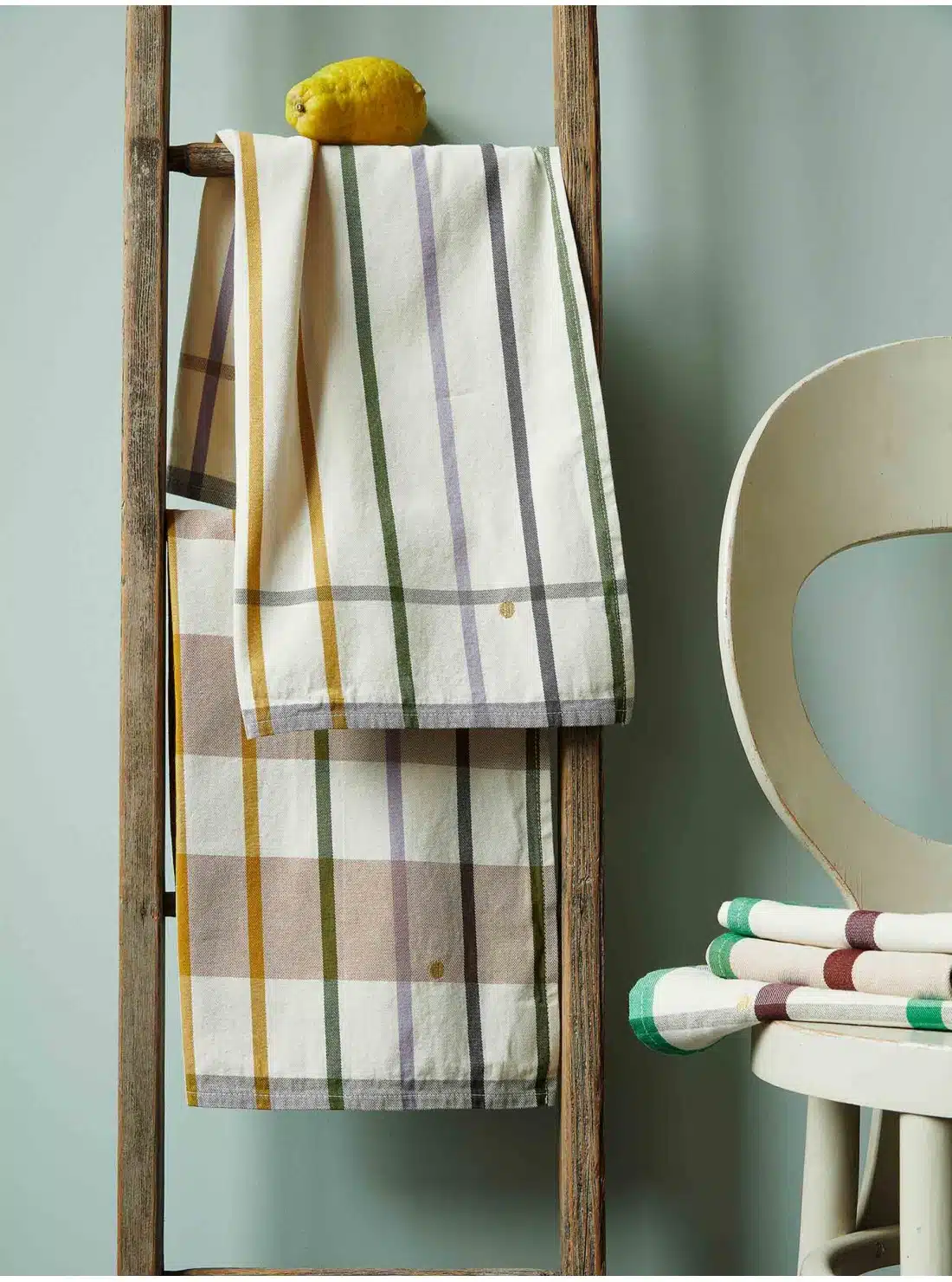 Een set van 2 theedoeken met een verschillend patroon (streep en ruit) van biologisch katoen.