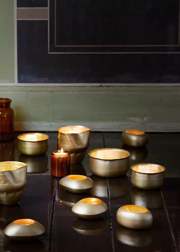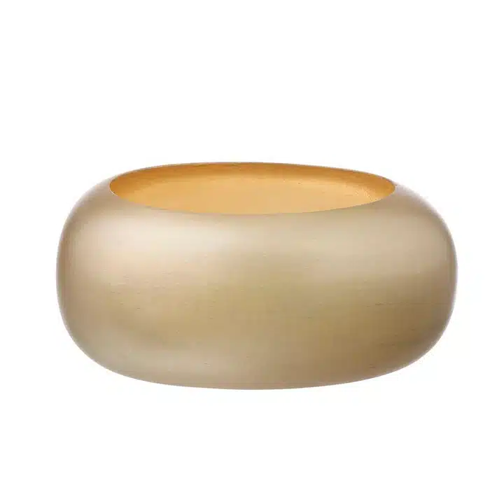 Theelichthouder met handgeschilderde gouden kleur. Deze kleine rustieke kandelaar zorgt voor een prachtige serene sfeer.