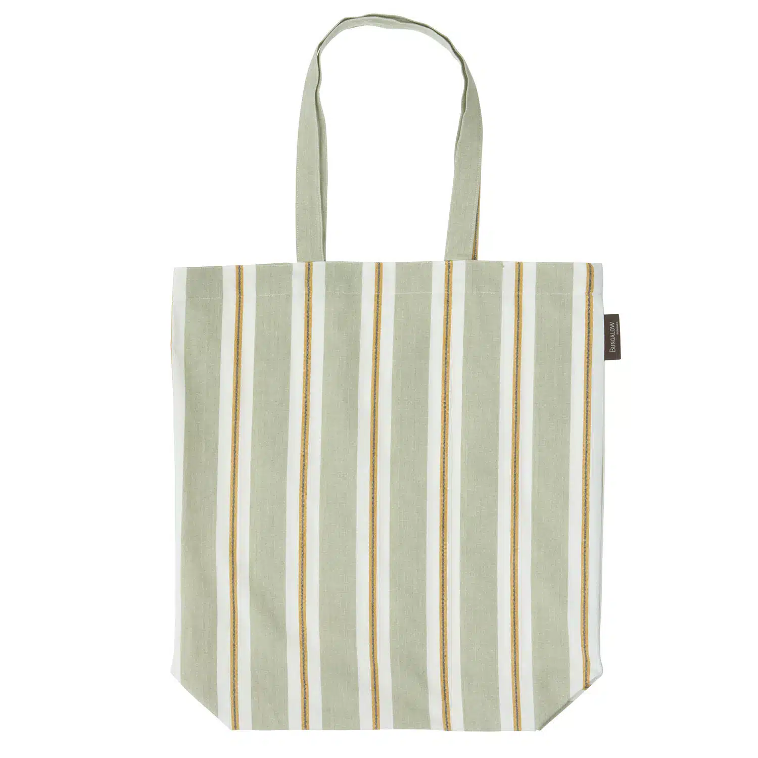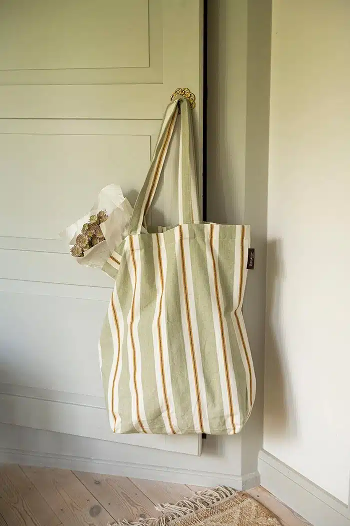 Een sterke, vrolijke, canvas tas met groene strepen, gemaakt van 100% katoen.