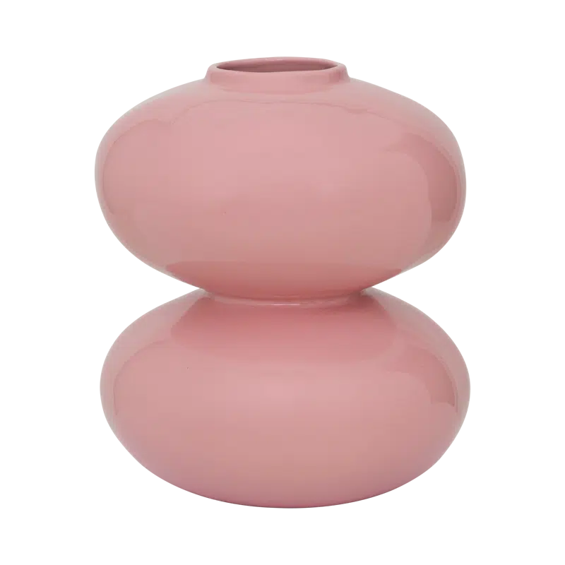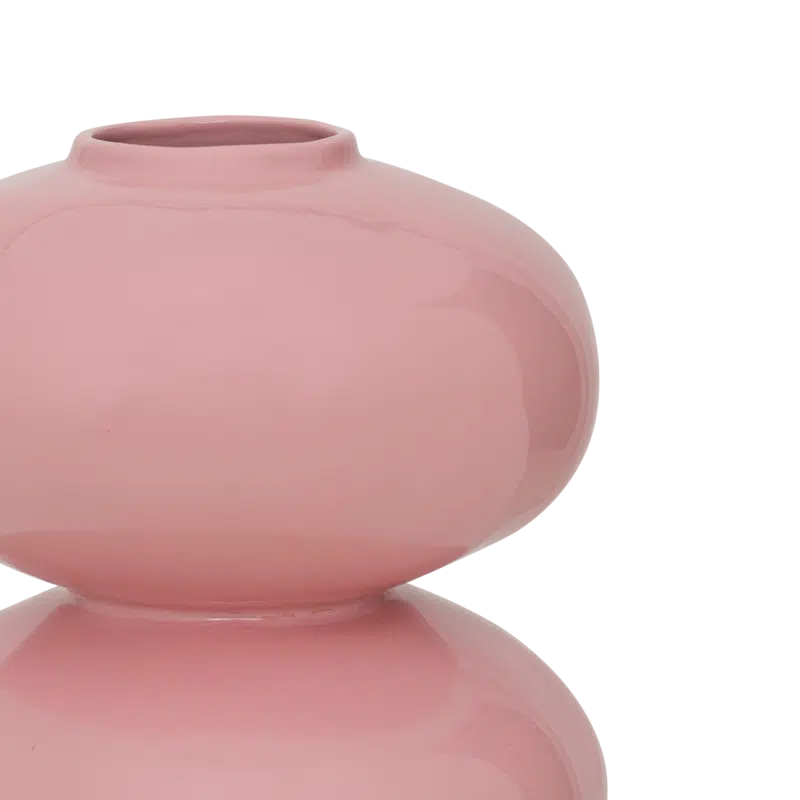 Een organisch gevormde keramische vaas van Urban Nature Culture in een zachte, milde roze kleur, afgewerkt met een glanzende glans en gemaakt in Portugal. De gestapelde, bolvormige vormen creeren een speels en toch verfijnd silhouet.