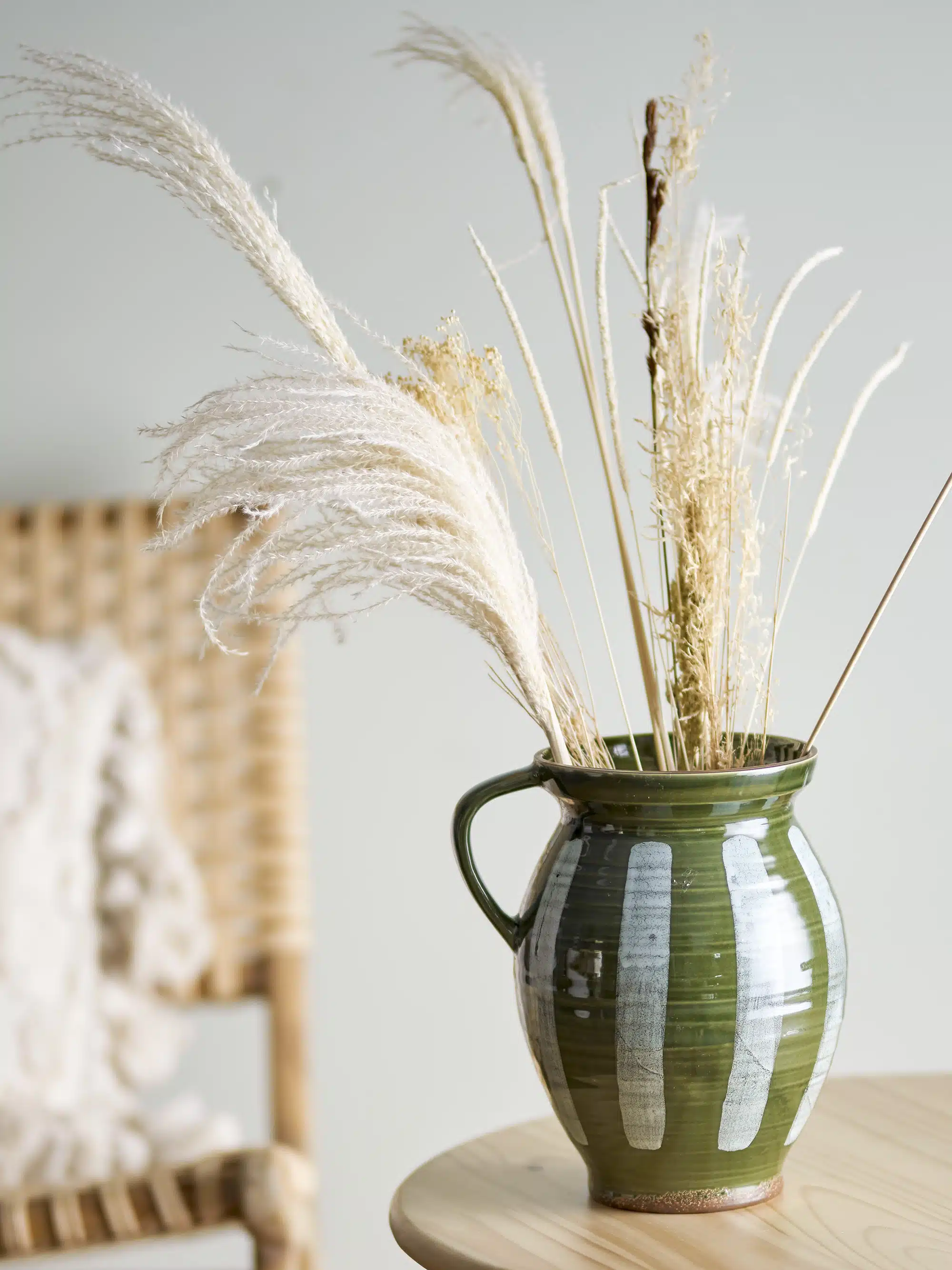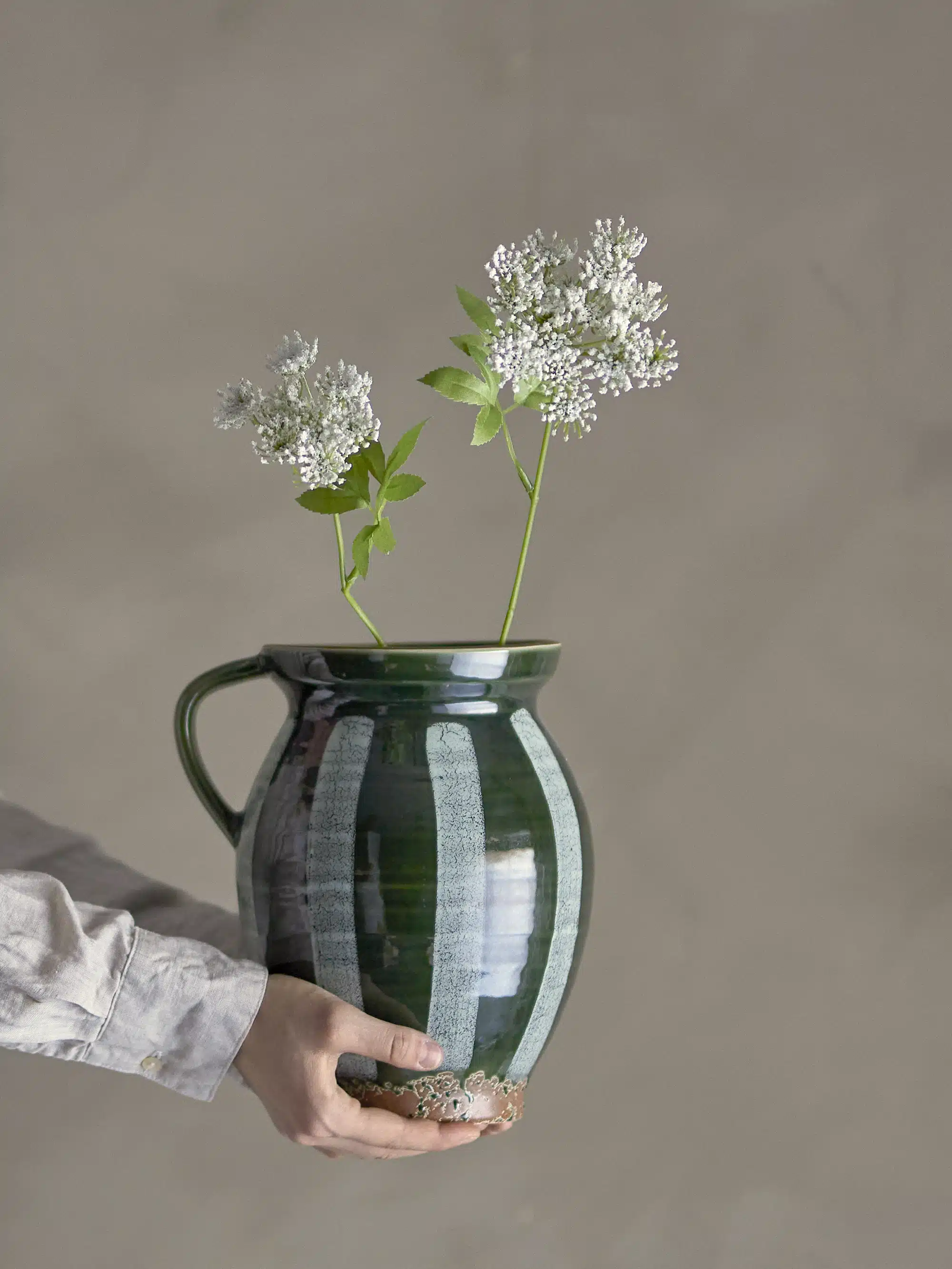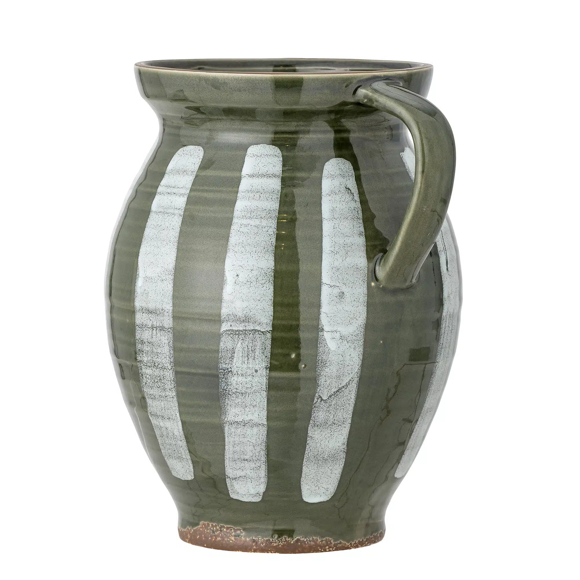 De Frigg Vase van Bloomingville is een prachtige handgedecoreerde vaas beschilderd met groene en witte verticale brede strepen. Elk stuk is uniek omdat het met de hand is versierd.