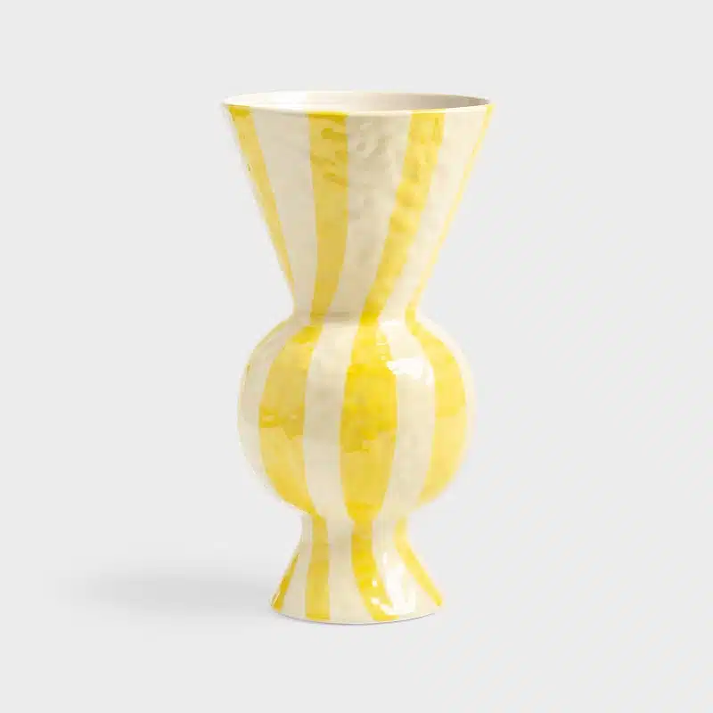 Maak kennis met onze handbeschilderde Rhombic vaas, gemaakt van klei en barstensvol speelse vormen en levendige kleuren van snoep! Het voegt een vrolijke toets toe aan jouw interieur.