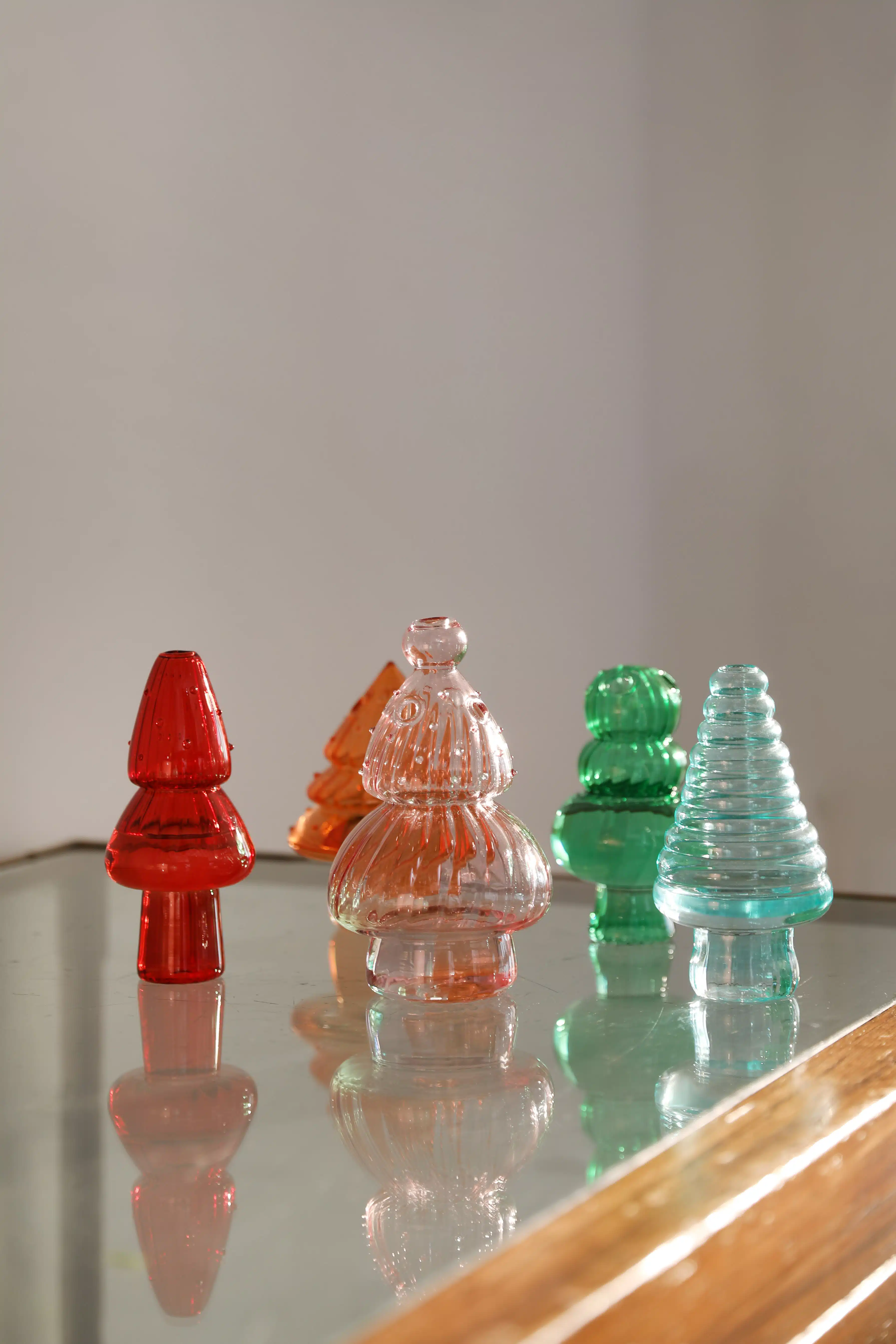 Een rood vaasje in de vorm van een boom, gemaakt van gekleurd glas. Een ontwerp van het Amsterdamse merk &klevering en verkrijgbaar in 5 verschillende kleuren.
