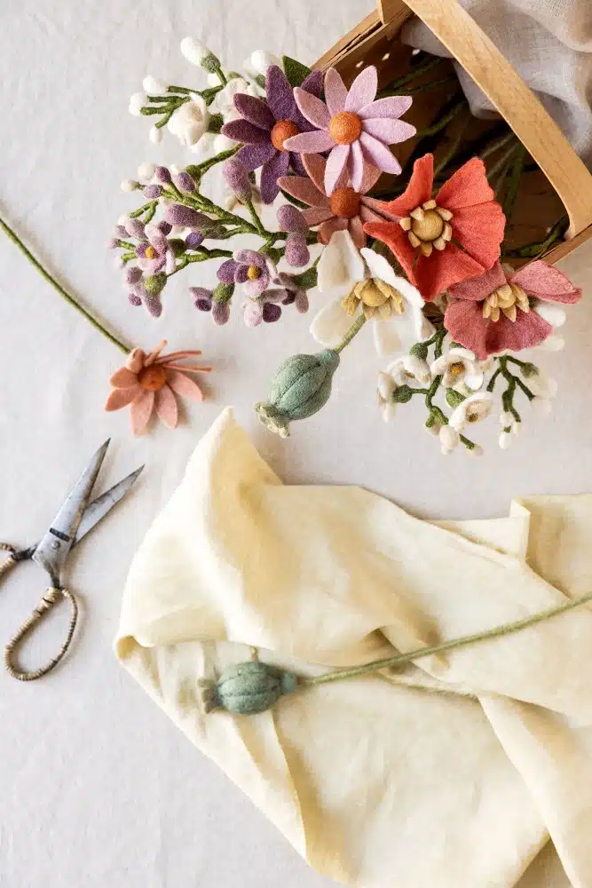 Een mooie vilten cosmos voor in een klein vaasje of als decoratie op de paastafel.