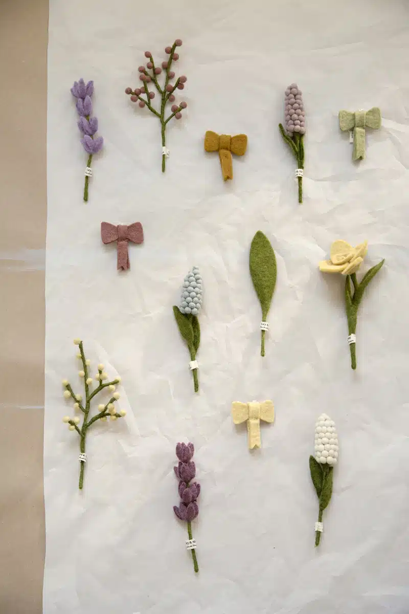 Een leuke hanger van vilt in de vorm van een strik. Versier er een cadeautje mee, de paastakken of de ontbijttafel.