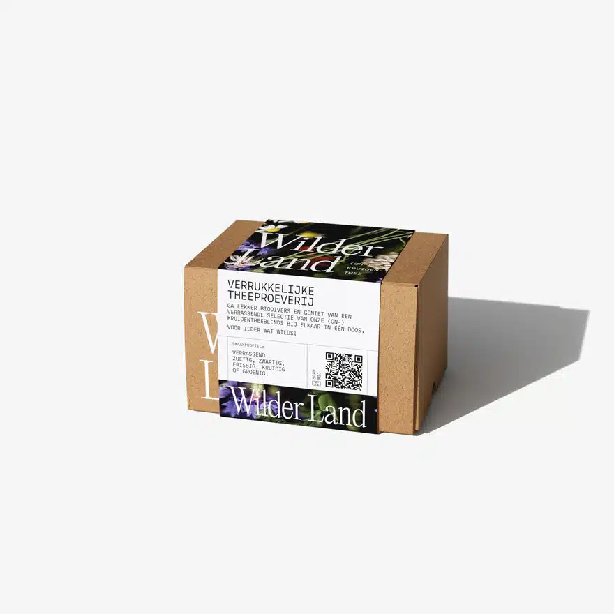 Diverse theesmaken in cadeauverpakking. In deze set zitten de smaken: F***ing Fris, (On)Groen, Offline, Holy Smokey en Boswandeling. Perfect om het assortiment van Wilder Land beter te leren kennen, of om cadeau te geven aan een echte theeliefhebber!