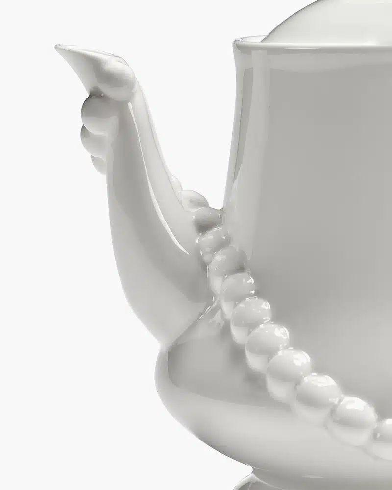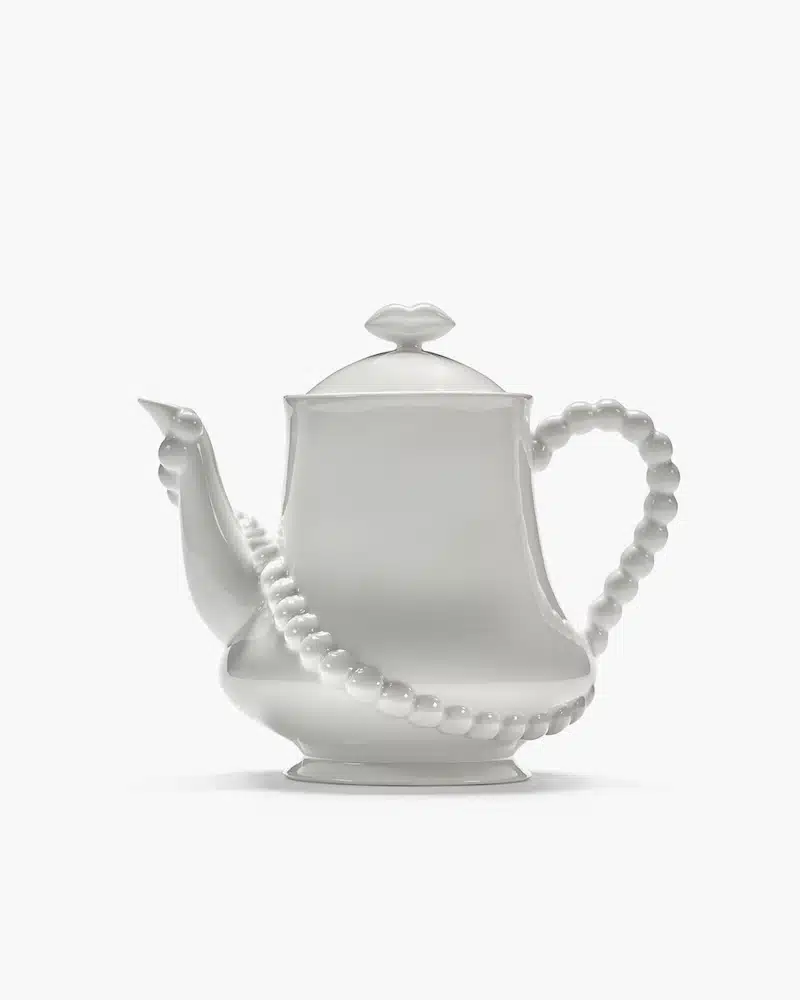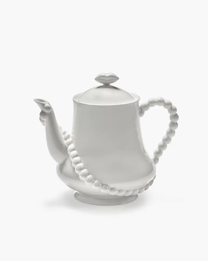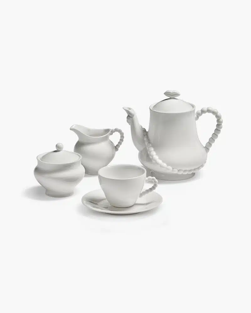 De Antwerpse juweelontwerpers Wouters & Hendrix staan bekend om hun betaalbare, avant-gardistische juwelen. Wegens groot succes blijft Les Objets Mouleversants verder groeien. Ditmaal presenteren Wouters & Hendrix een koffie- en theeset, bestaande uit een schaal, kan en kopjes die de elegantie van de Belle Époque weerspiegelen — maar dan met een surrealistische toets. Zo prijken er wolken, juwelen & een dambordpatroon op het servies. het gebak voorzien de juwelenmakers bovendien een étagère in de vorm van rode lippen.
